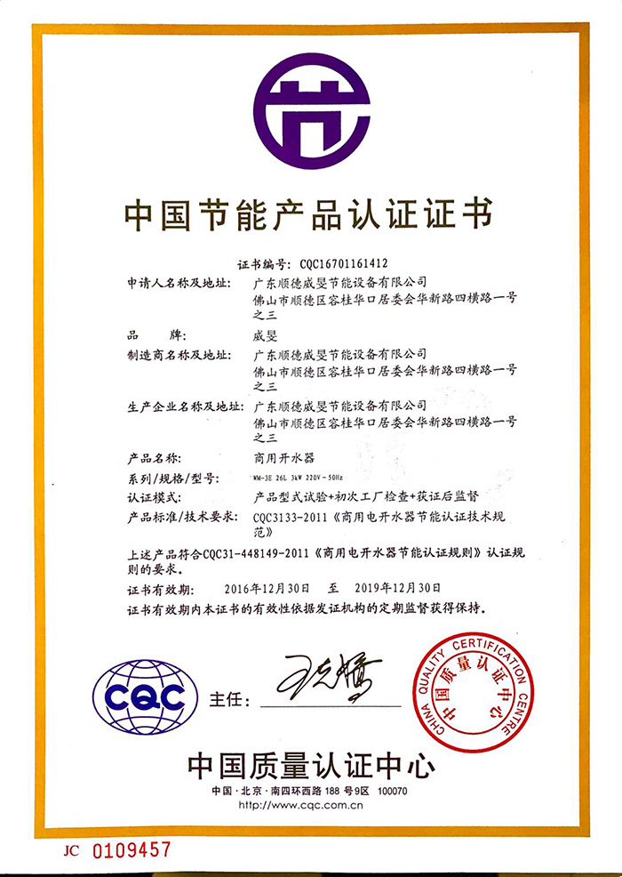 中国节能产品认证证书