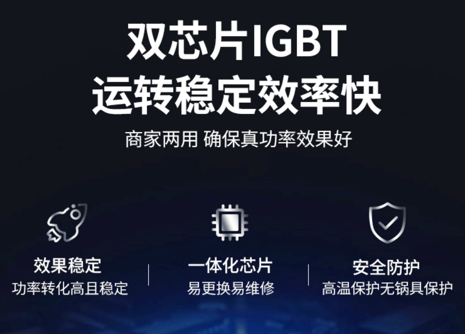 2.产品质量有保障,生产厂家通过长时间实践经验的累积,攻克了许多 瓶颈问题,因此 大功率电磁炉的稳定性和可靠性耐用度能够 大幅提高。