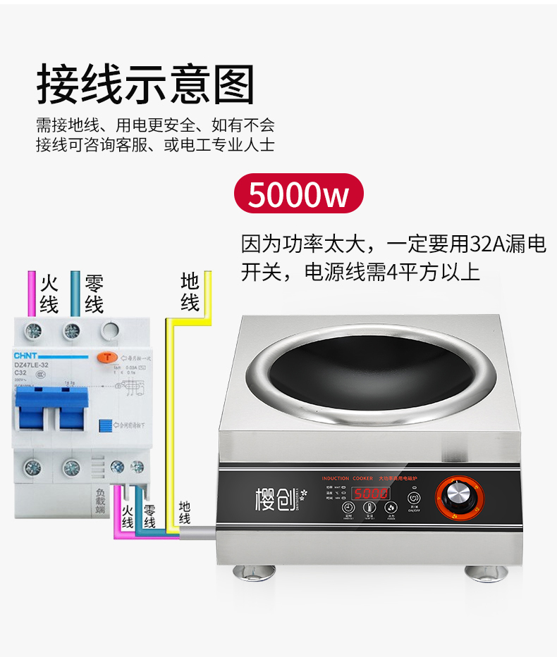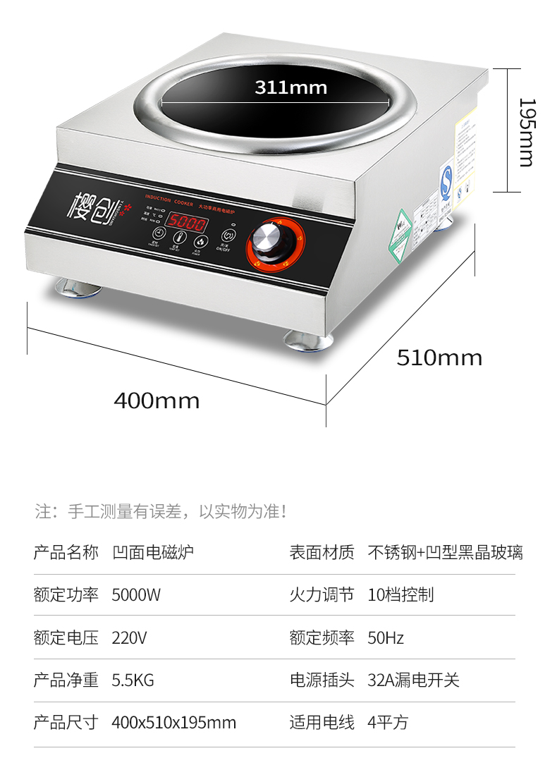 商用凹面电磁炉5000W