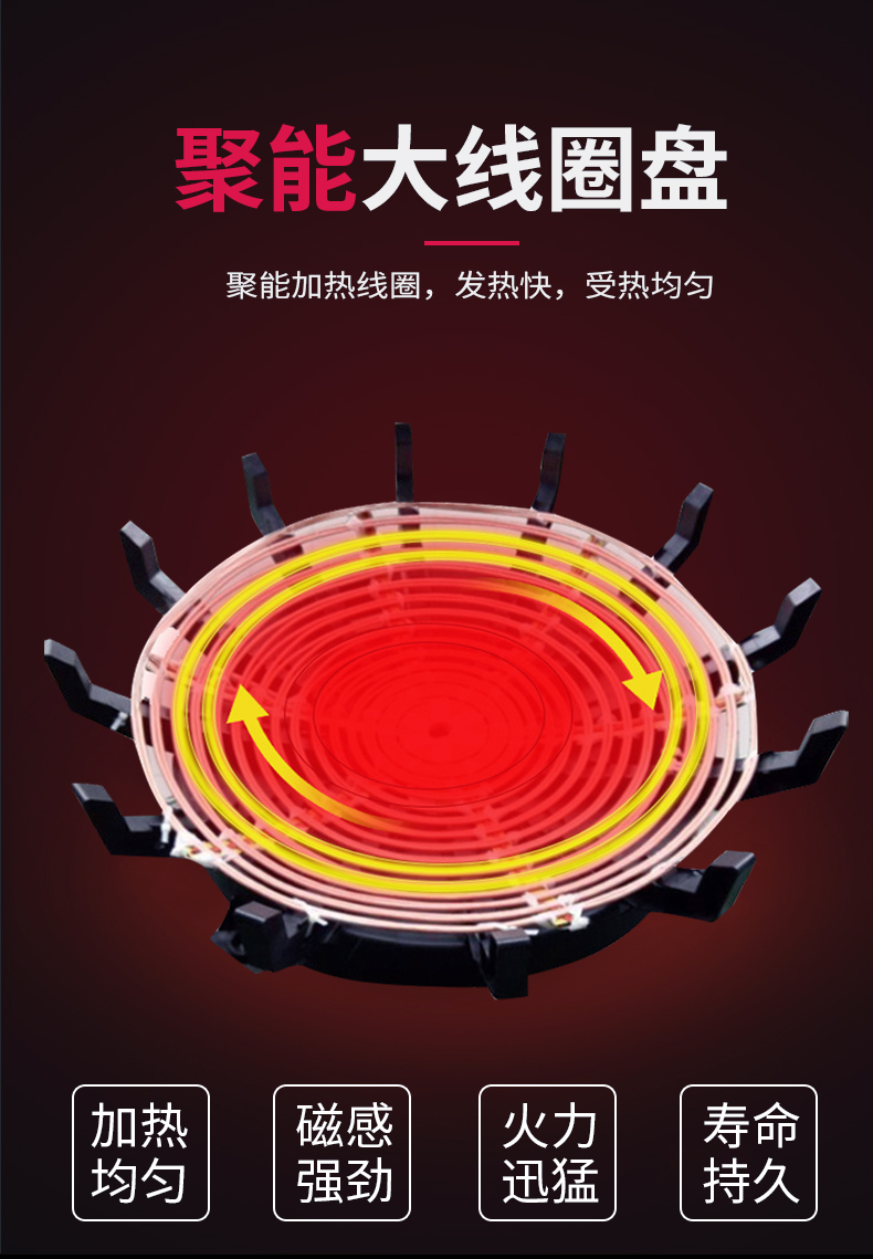 - 具有聚能技术,大面积均速加热,适用于各种锅具  |