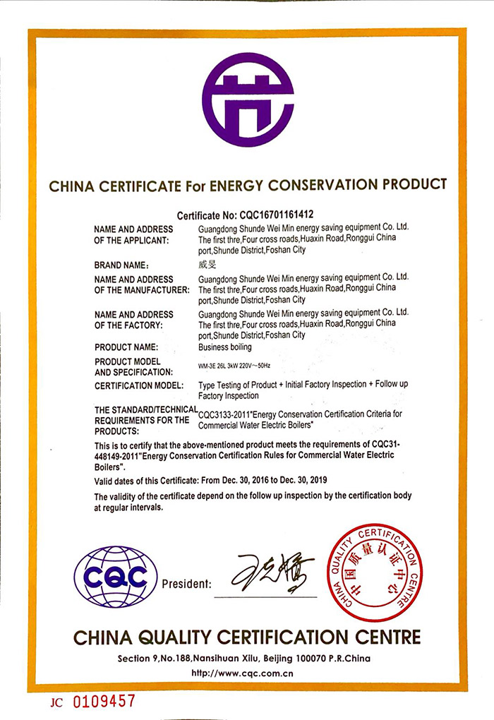 中国节能产品认证证书