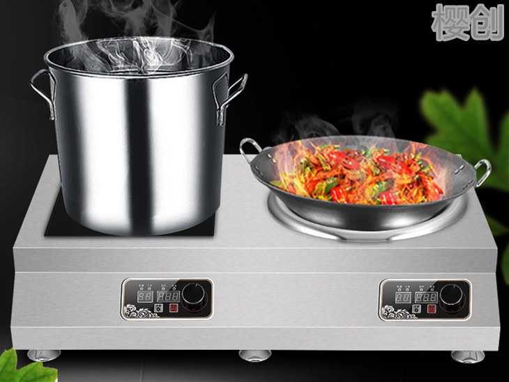 双头电磁炉的优势?双头电磁炉实际上就是指双灶电磁炉,是在传统式电磁炉上的一种设计创新,它不但可以用平底锅,同时也可以使用传统的圆底锅,十分方便,可以双头同时开工,省时省力。可以用作家庭厨具,也可以适用于酒店、食堂、饭店等餐饮业。樱创双头电磁炉是个很好的选择: