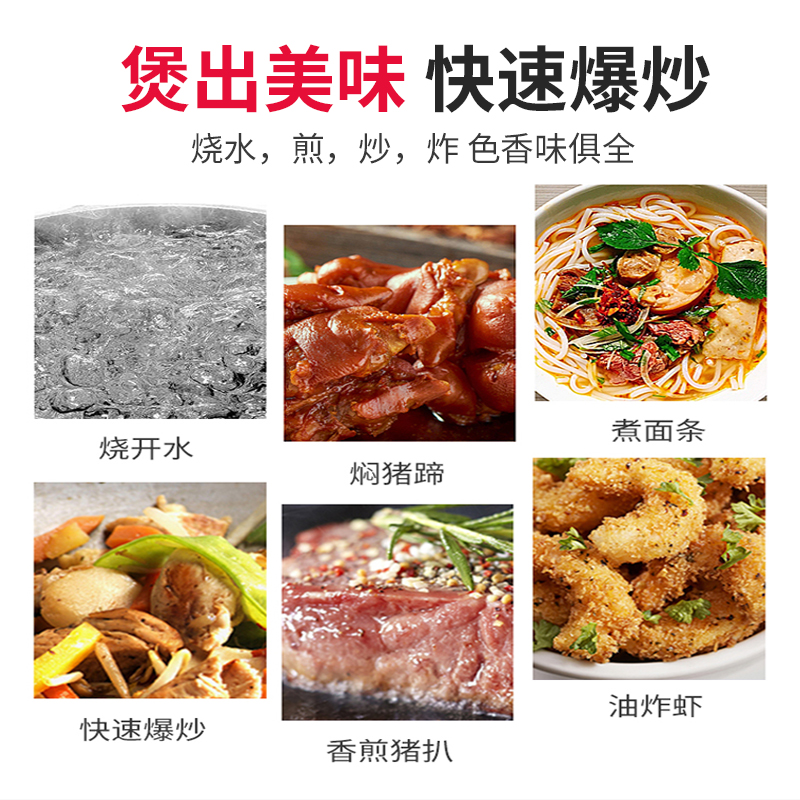3、多用途化---大功率电磁炉“炒、蒸、煮、炖、涮”样样精通。在大城市,新一家三口通常情况下食用大功率电磁炉,基本替换了煤气灶,天燃气管道等。