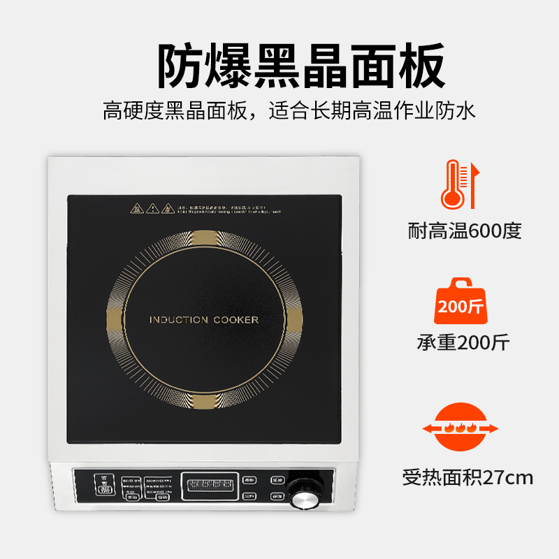 空锅加热的时间稍长,商用电磁灶还应该具备自行发出警报并结束加热的功能。